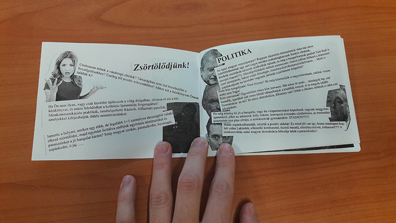 Guidebook for complains, Hungary is a nation which loves to complain, here are some advices, communicational technics, common topics which we can yearn on. So if you are too optimistic, you see only the light side of light, or you don't know what to talk about in a company of friends, this zine is made for you! Filled with jokes, sarcasm, irony, politics, socio-reflection...